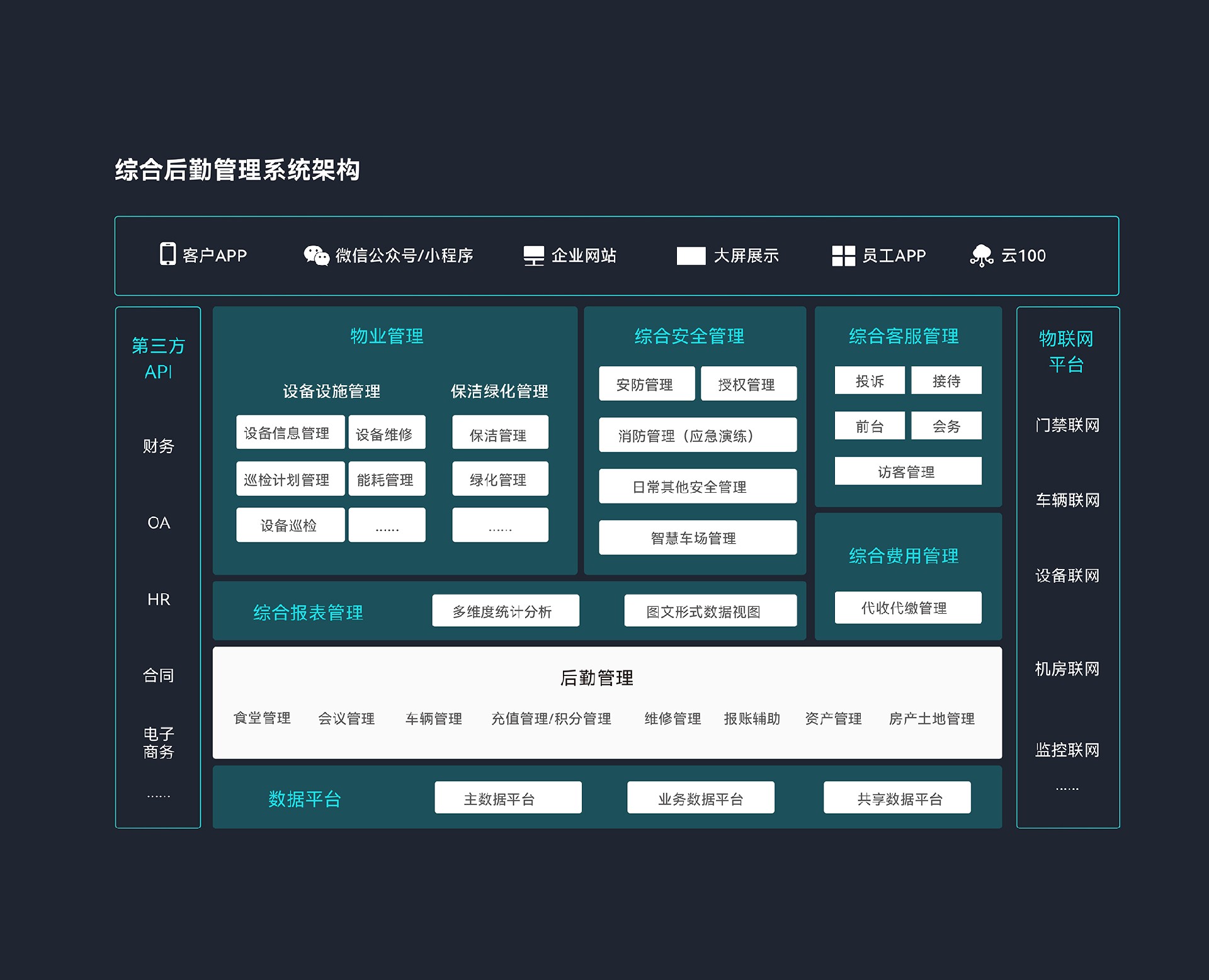 依托人工智能技术,江南网页版页面登录利用“互联网+5G智能手机”平台,成功构建了一个安全可靠、设备兼容广泛的行政综合管理云平 台——微后勤。该平台通过集成不同专业、系统、性质和技术领域的后勤服务管理系统与服务内容,如安防管理、车辆管理、 物业管理等,实现了高效统一的行政综合管理。用户只需通过微信公众号即可便捷访问微后勤,享受一站式后勤服务体验。