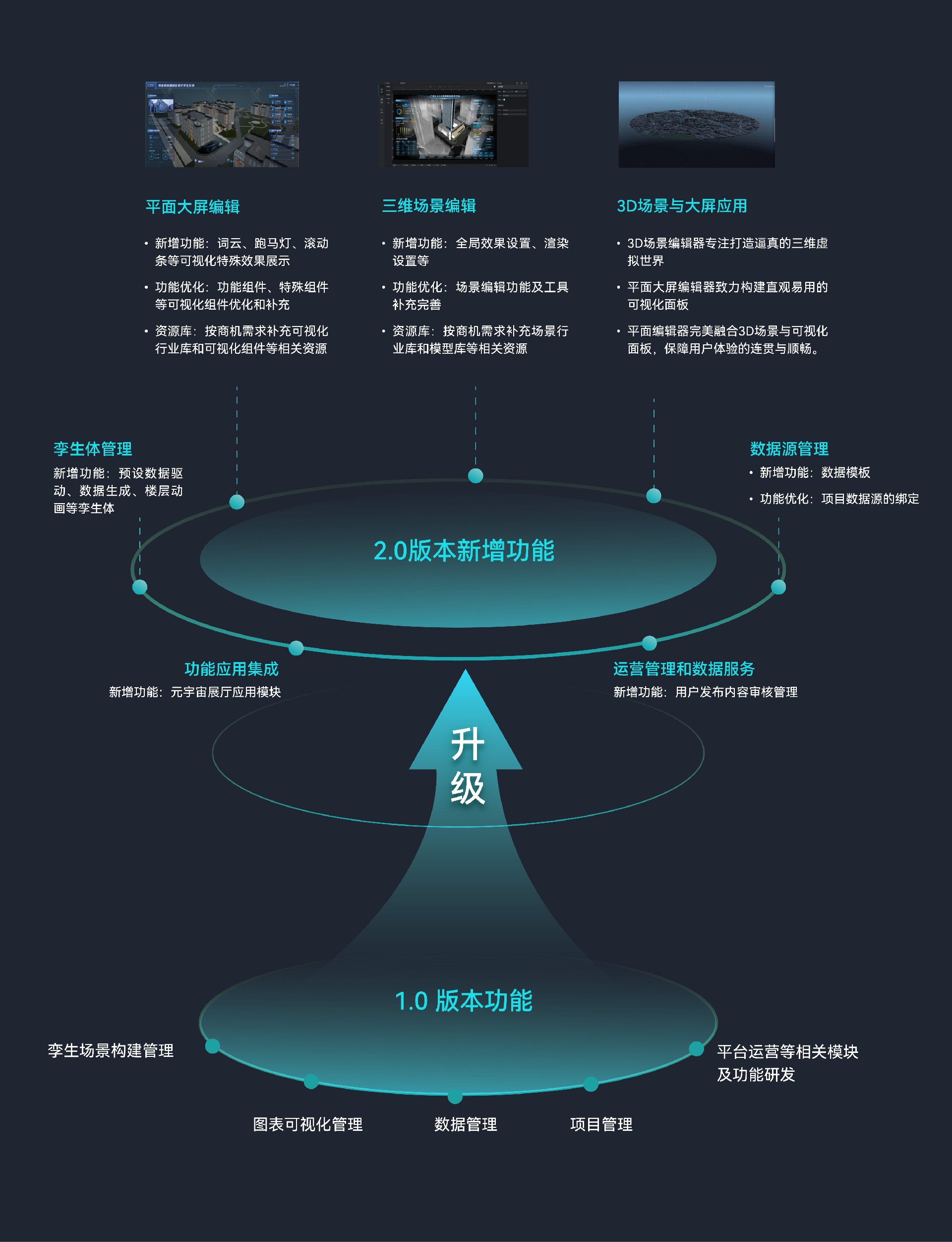 2023年,江南网页版页面登录对该平台在孪生体管理、3D场景与大屏应用、数据源管理等七大模块进行了功能升级。